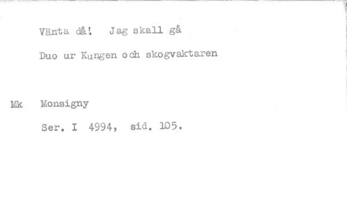//// Vänta då' Jag skall gå Duo ur Kungen och skogvaktaren //// Mk Monsigny //// Ser, I 4994) sid. 105.
