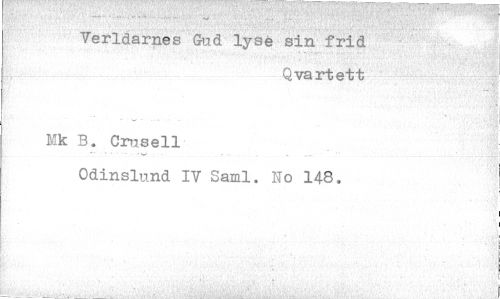 //// Verldarnes Gud lysé ain frid //// Q vartett -—- //// -r //// Mk B. Cr!isell //// Odinslund IV Sami. No 148.