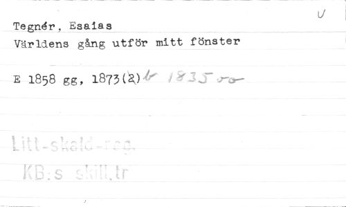 //// (7 //// Tegnér, Esaias //// Världens gång utför mitt fönster E 1858 gg, 1873