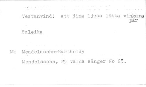 //// Vestanvinål att dina ljusa lätta vingars //// par //// Suleika //// Mendelssohn-Bartholdy Mendelssohn, 25 valda sånger No 25.