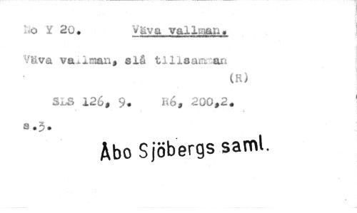 //// ! o y 20. Väva vallan. //// V&va va^rnan, sl& tliisa^-afi //// (R) //// SLS 126, 9. Ro, 200,2. //// a .3. //// Abo Sjöbergs samt.