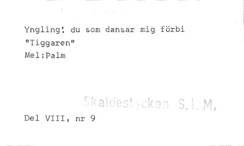 //// Yngling t du som dansar mig förbi "Tiggaren" //// Mel:Palm //// ' Cl'...-JS , ; b, //// Del VIII, nr 9