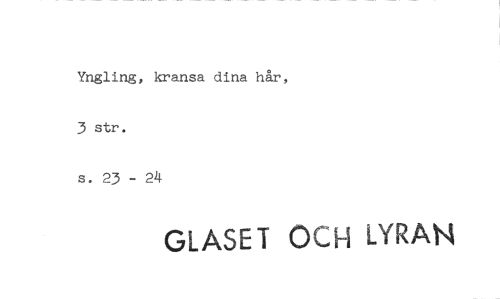 //// Yngling, kransa dina hår, 3 str. s. 23 - 24 //// GLASEI OCH LYRAN
