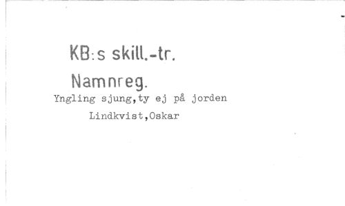 //// KB:s skiH.-tr. Namnreg. //// Yngling sjung,ty ej på jorden Lindkvist,Oskar