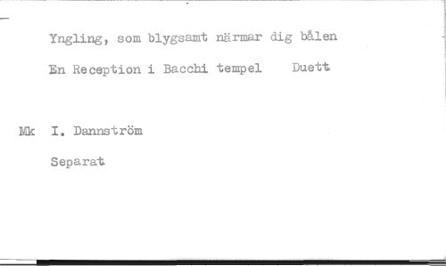 //// Yngling, som blygsamt närmar dig b&len En Reception i BaccM tempel Duett //// I. Dannström Separat