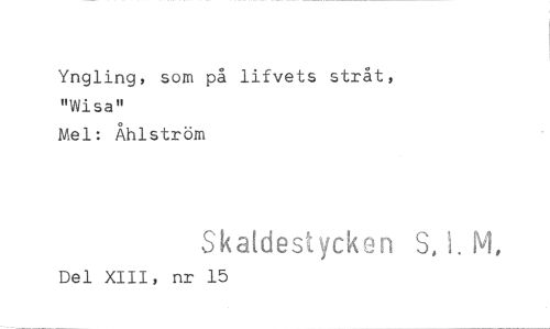 //// Yngling, som på lifvets stråt, "Wisa" //// Mel: Åhlström //// Skatdestycken S, i. M, //// Del XIII, nr 15