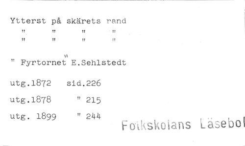 //// Ytterst på skärets rand //// !t Tt !t !f //// tt !t t! !f //// " Fyrtornet E.Sehlstedt //// utg.1872 sid.226 utg.1878 " 215 utg. 1899 " 244 //// foi!tskoians Lasebo!