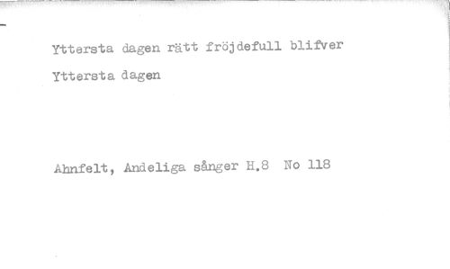 //// Yttersta dagen rätt fröjdefull blifver Yttersta dagen //// Ahnfelt, Andeliga sånger H.8 No 118