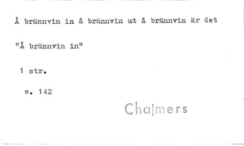 //// Å brännvin in å brännvin ut å brännvin är det //// "Å brännvin in" //// 1 str. s. 142 //// Cholrners