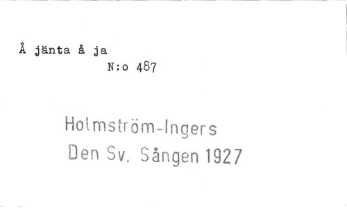 //// Å jänta å ja //// N:o 487 //// Ho^mstrdm-lngers Oen Sv. Sången 1927