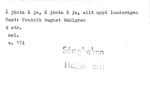 //// Å jänta å ja, å jänta å ja, allt uppå landavägen Text: Fredrik August Dahlgren