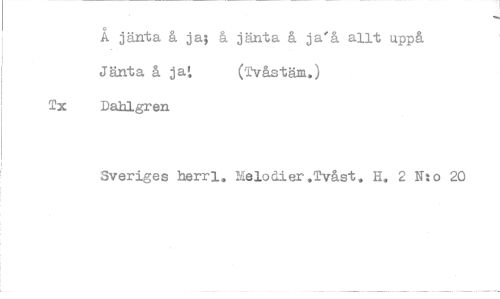 //// A jänta å ja; å jänta å ja'å allt uppå Jänta å ja^ (Tv&stäm.) //// Tx Dahlgren //// Sveriges herrl. Melodier.Tvåst. H. 2 N:o 20