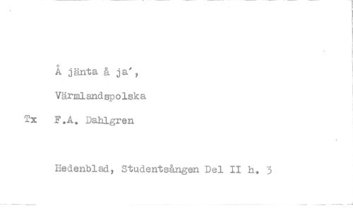 //// Å jänta å ja', Värmlandspolska F.A. Dahlgren //// Hedenblad, Studentsången Del II h.