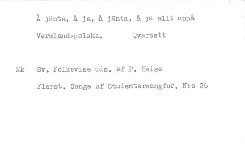 //// Å jänta, & ja, å jänta, å ja allt uppå Vermlaadspolska. Qvartett //// Mk Sv. Folkevise uds. af P, Heise //// Flerst, Sange af Studentersangfor, N:o 26