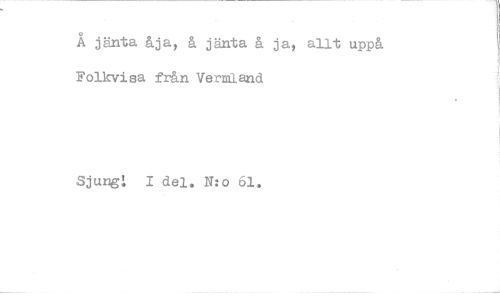 //// Å jänta åja, å jänta å ja, allt uppå //// Folkvisa från Vermland //// Sjungi I del. N:o 61.