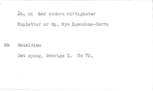 //// Åh, ni har vackra rättigheter Kupletter ur Op. Nya Bgendoms-Herm //// Boieldieu //// Det sjung. Sverige I. No 72.