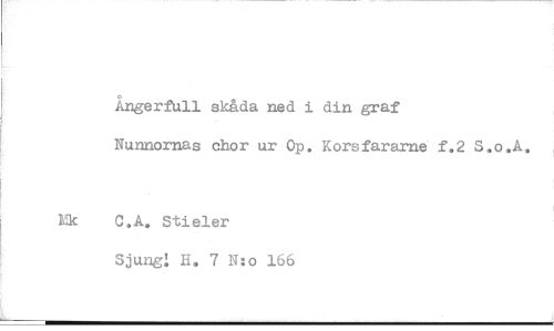 //// Ångerfull skåda ned i din graf //// Nunnornas chor ur Op. Korsfarame f.2 S.o.A, //// Mk C,A. Stieler //// Sjungl H. 7 N:o 166