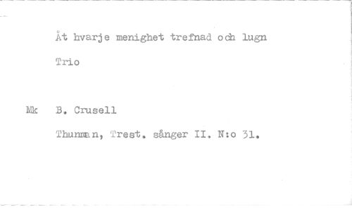 //// Åt hvarje menighet trefnad och lugn Trio //// Mk B. Crusell //// Thunmn, Trest. sånger II. N:o 31.