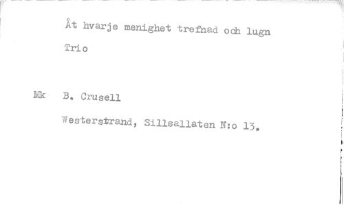 //// Åt hvarje menighet trefnad och lugn Trio //// B. Crusell //// Westerstrand, Sillsallaten N:o 13.