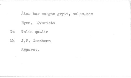 //// Åter har morgon grytt, Hymn. Qvartett Tx Talis qualis Mk J.P. Grönhamn SQparat. //// solen,som
