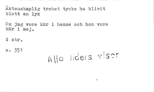 //// Äktenskaplig trohet tycks ha blivit blott en lyx //// Om jag vore kår i henne och hon vore kär i mej. //// 4 str. //// s. 351
