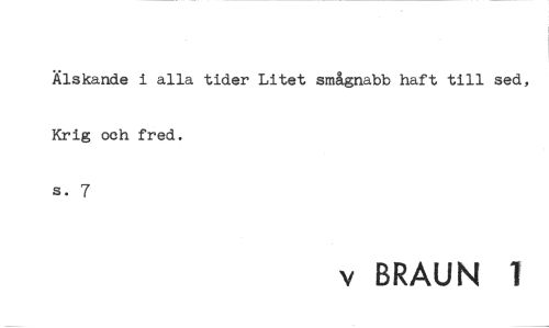 //// Älskande i alla tider Litet smågnabb haft till sed, Krig och fred. s. 7