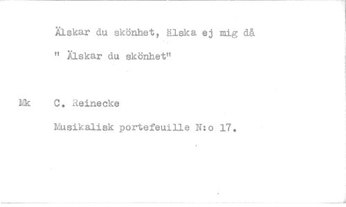 //// Älskar du skönhet, älska ej mig då " Älskar du skönhet" //// Mk C, Reineeke //// Musikalisk portefeuille N:o 17.
