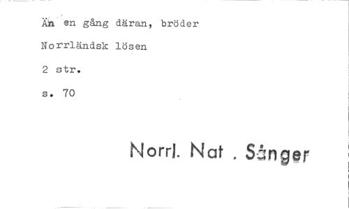 //// Äh en gång däran, bröder Norrländsk lösen //// 2 str. s. 70 //// Norr]. Nat , Singef