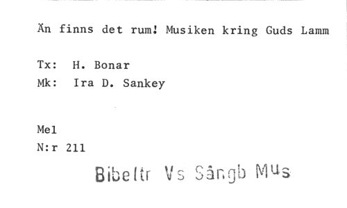 //// An finns det rumi Musiken kring Guds Lamm //// Tx: H. Bonar Mk: Ira D. Sankey //// Mel //// N:r 211