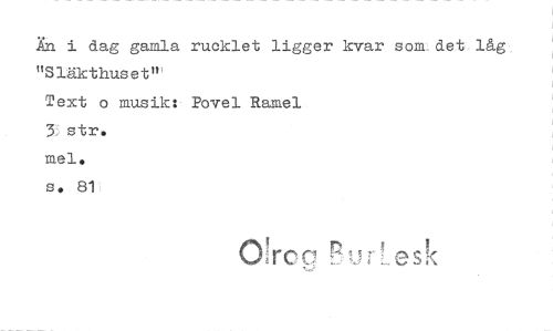 //// Än i dag gamla rucklet ligger kvar som-det l&g "Slakthuset" //// Text o musik: Povel Ramel 3^ str. mel. s. 81