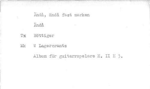 //// Ändå, ändå fast marken Ändå Tx Bottiger Mk W Lagercrantz //// Album för guitarrspelare H. II H 3.