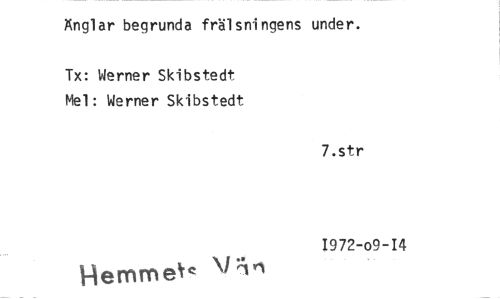 //// Knglar begrunda frälsningens under. //// Tx: Merner Skibstedt Mel: Werner Skibstedt //// 7.str //// 1972-09-14 //// Hemmet