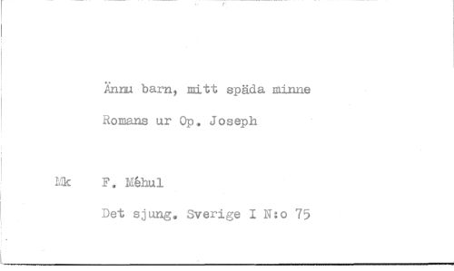 //// Ännu barn, mitt späda minne Romans ur Op. Joseph //// F, Méhul //// Det sjung. Sverige I N:o 75