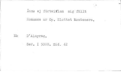 //// Xnnu ej förtviflan mig fällt //// Romance ur Op, Slottet Montenero. //// D'Alayrac.