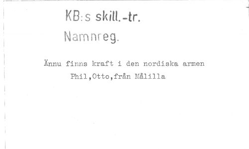//// KB.s ski!L-tr. //// Namnreg. //// Ännu finns kraft i den nordiska armen Phil,Otto,från Målilla