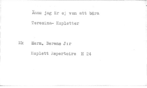 //// Knnu jag är ej van att bära Teresina- Kupletter //// Mk Herm. Berens J:r //// Kuplett Repertoire H 24