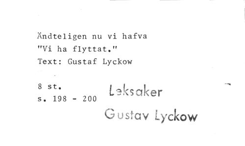 //// Andteligen nu vi hafva "Vi ha flyttat." //// Text: Gustaf Lyckow //// s. 198 - 200 //// Gustav Lyckow