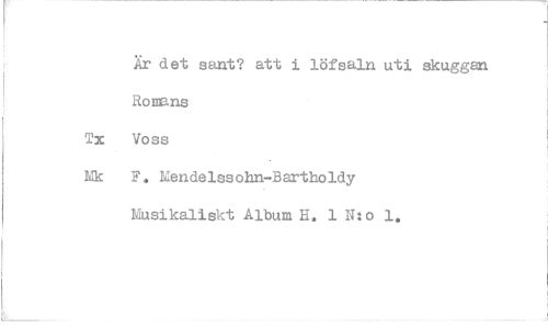 //// Är det sant? att i löfsaln uti skuggan Romans Tx Voss //// Mk F. Mendelssohn-Bartholdy //// Musikaliskt Album H, 1 N:o 1.