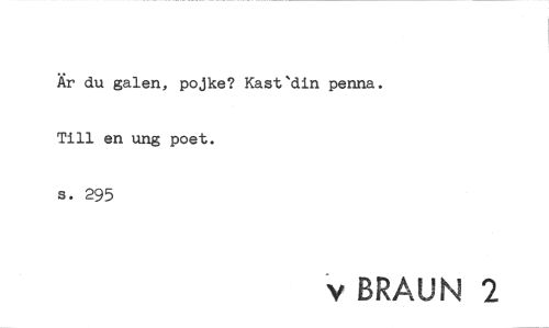 //// Är du galen, pojke? Kast'din penna. Till en ung poet. //// s. 295