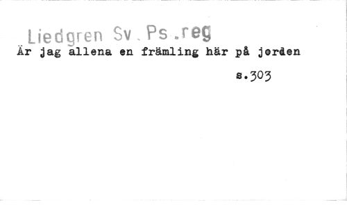 //// Liedg^en Sv Ps .reg //// Är jag allena en främling här på jeråen //// 8.303