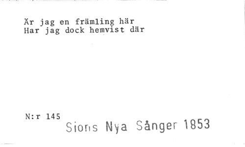 //// Ar jag en främling här Har jag dock hemvist där //// N:r 145 //// Sions Nya Sånger 1853