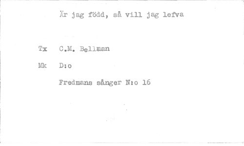 //// Är jag född, så vill jag lefva //// Tx C.M. Bellc^an Mk D:o //// Fredmans s&nger N:o 16