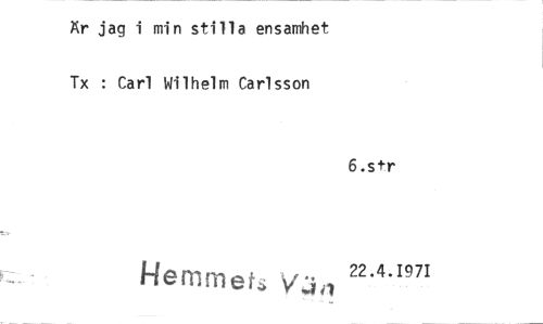 //// Kr jag i min stilla ensamhet //// Tx : Carl Wilhelm Carlsson //// Hemmet //// 6.str //// 22.4.1971