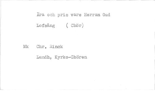 //// Ära och pris vare Herran Gud Lofsång ( Chör) //// Chr. Rinck Lundh, Kyrko-Chören
