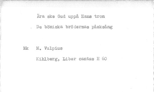 //// Ära ske God uppå Hans tron De bömiska brödernas påsksång //// M. Vulpius //// Kihlberg, Liber cantus H 60