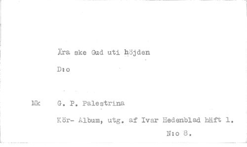 //// Ära ske Gud uti höjden D:o //// G, P. Palestrina //// Kör- Album, utg, af Ivar Hedenblad häft 1,