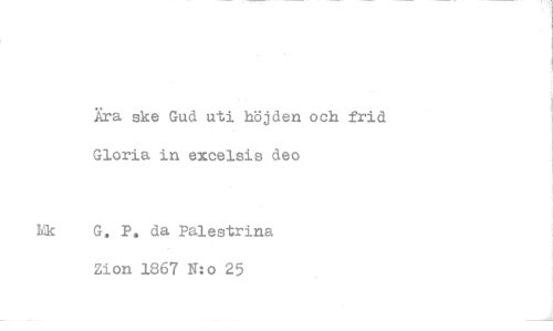 //// Xra ske Gud uti höjden och frid Gloria in excelsis deo //// G. P. da Palestrina Zion 1867 N:o 25