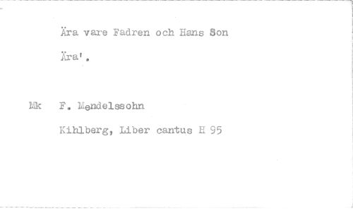 //// Ära vare Fadren och Hans Son Ära' , //// F. Mendelsaohn //// Kihlberg, Liber cantus B 95
