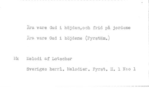 //// Ära vare Gud i höjden,och frid p& jordene Ära vare Gud i höjdene (Fyrstäm.) //// Melodi af Lotscher //// Sveriges herrl. Melodier. Fyrst. H, 1 N:o 1