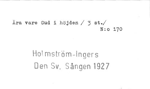 //// Ära vare Gud i höjden / 3 st. //// /N:o 170 //// Ho!.mström-!ngers Oen Sv. Sången 1927